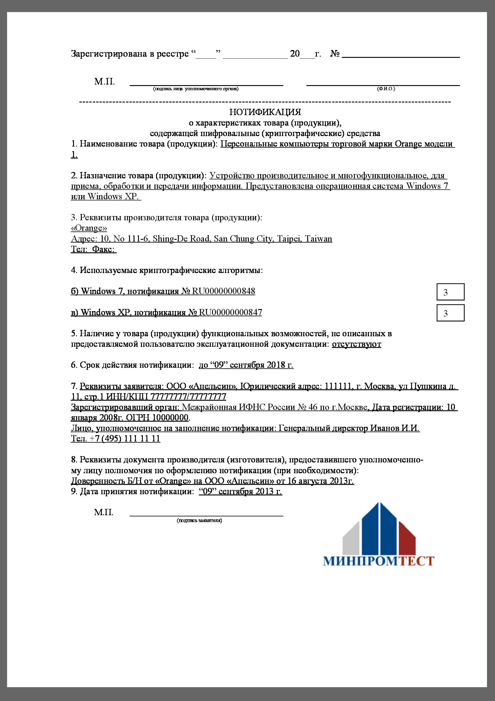 - Заявка на сертификацию.