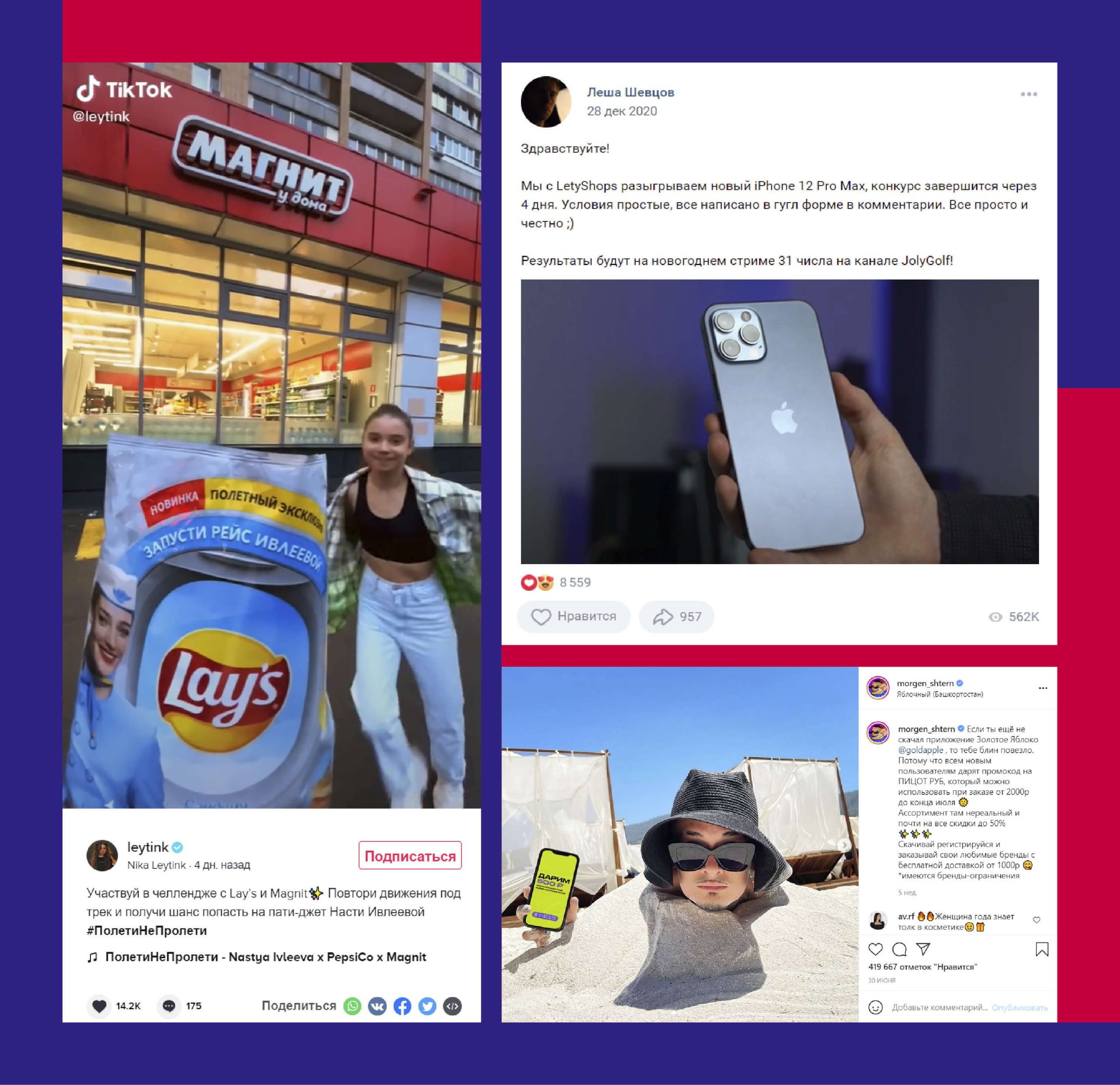 - Гивы и конкурсы, увеличение вовлеченности и охвата аудитории за счет совместных акций.